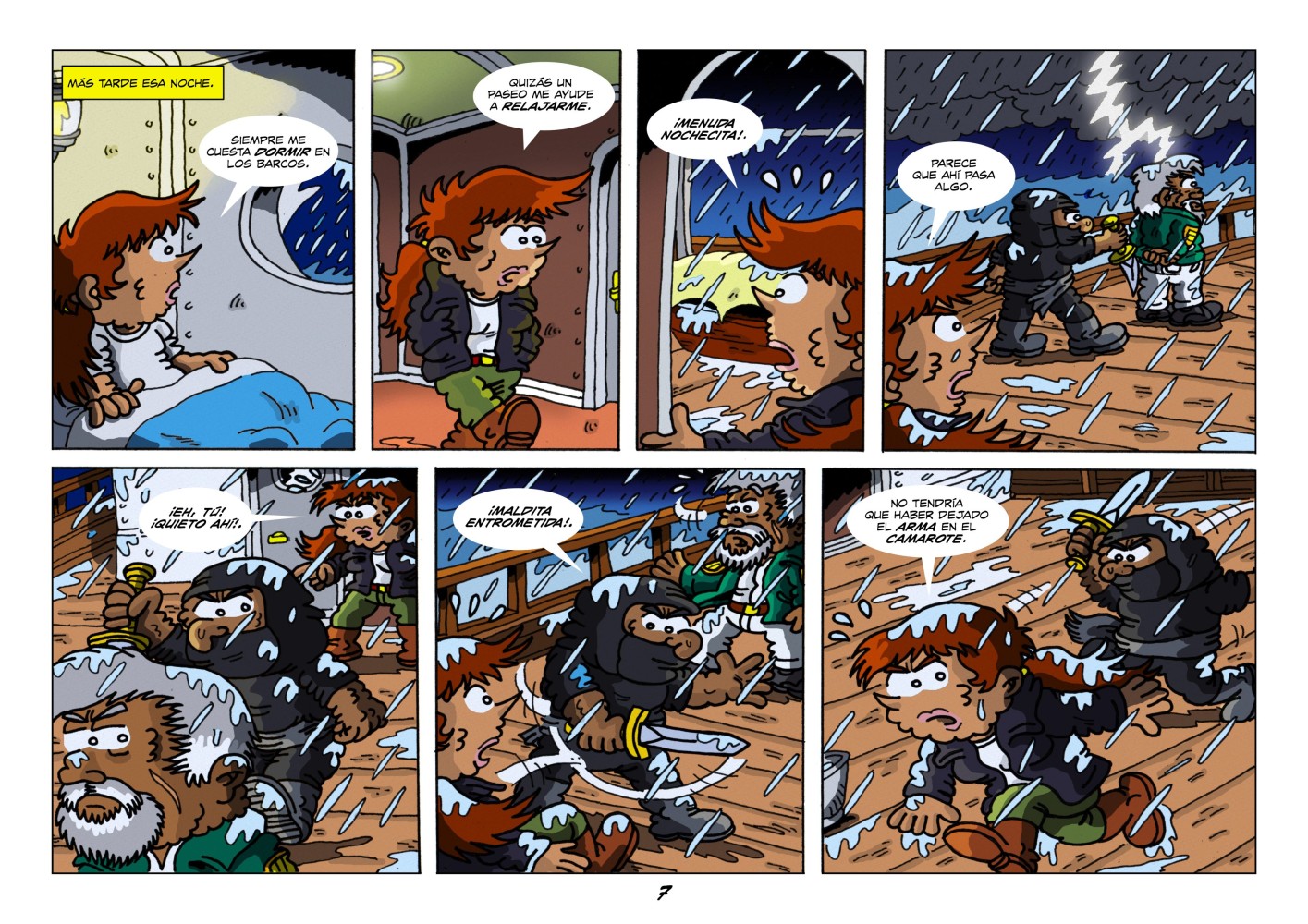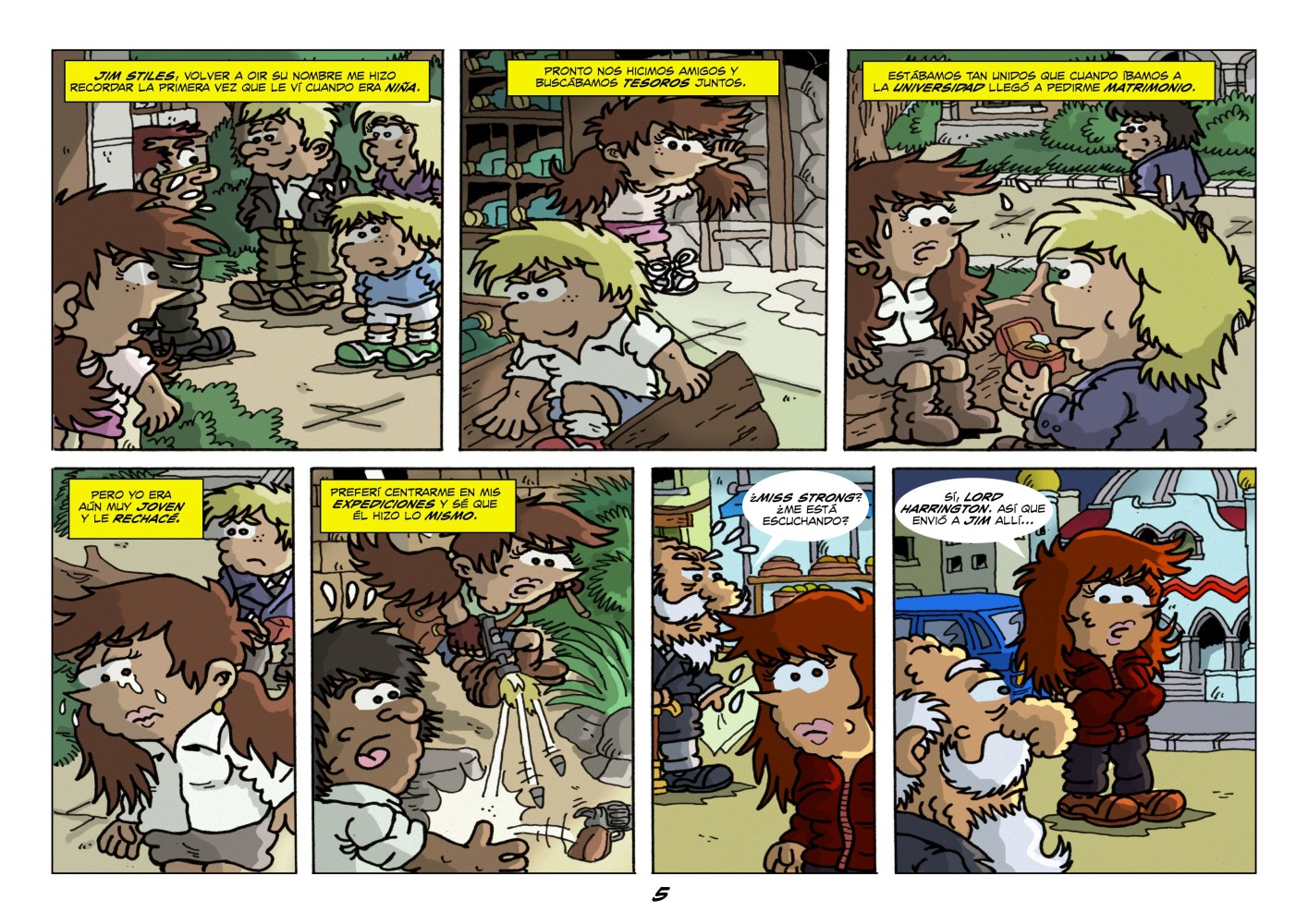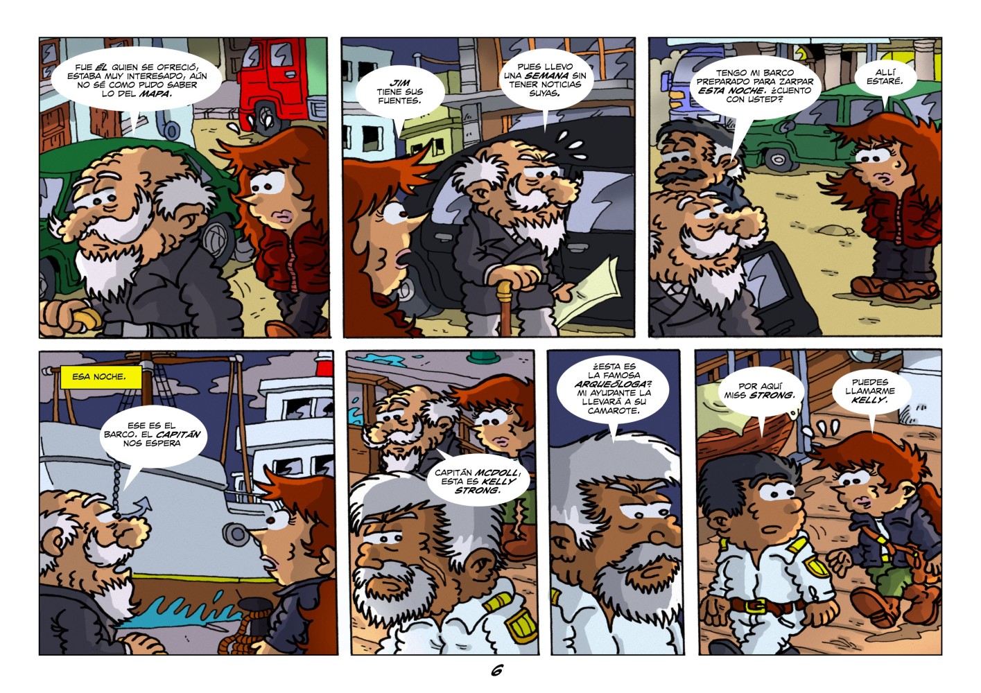 "Kelly Strong – La isla perdida" is an action-packed, humorous adventure comic for all ages. It tells the story of Kelly, the adventurous meatball from Meatball World, a treasure hunter who is one day contacted by Lord Harrington. He asks for her help on an expedition to find the lost island, a legendary place rumored to be home to dinosaurs. Although Kelly initially refuses, when Lord Harrington tells her that Jimmy Stiles, Kelly's childhood sweetheart, was the first to attempt to reach the island and hasn't been heard from since, Kelly has no choice but to join him in the search for the island and to rescue Jimmy.