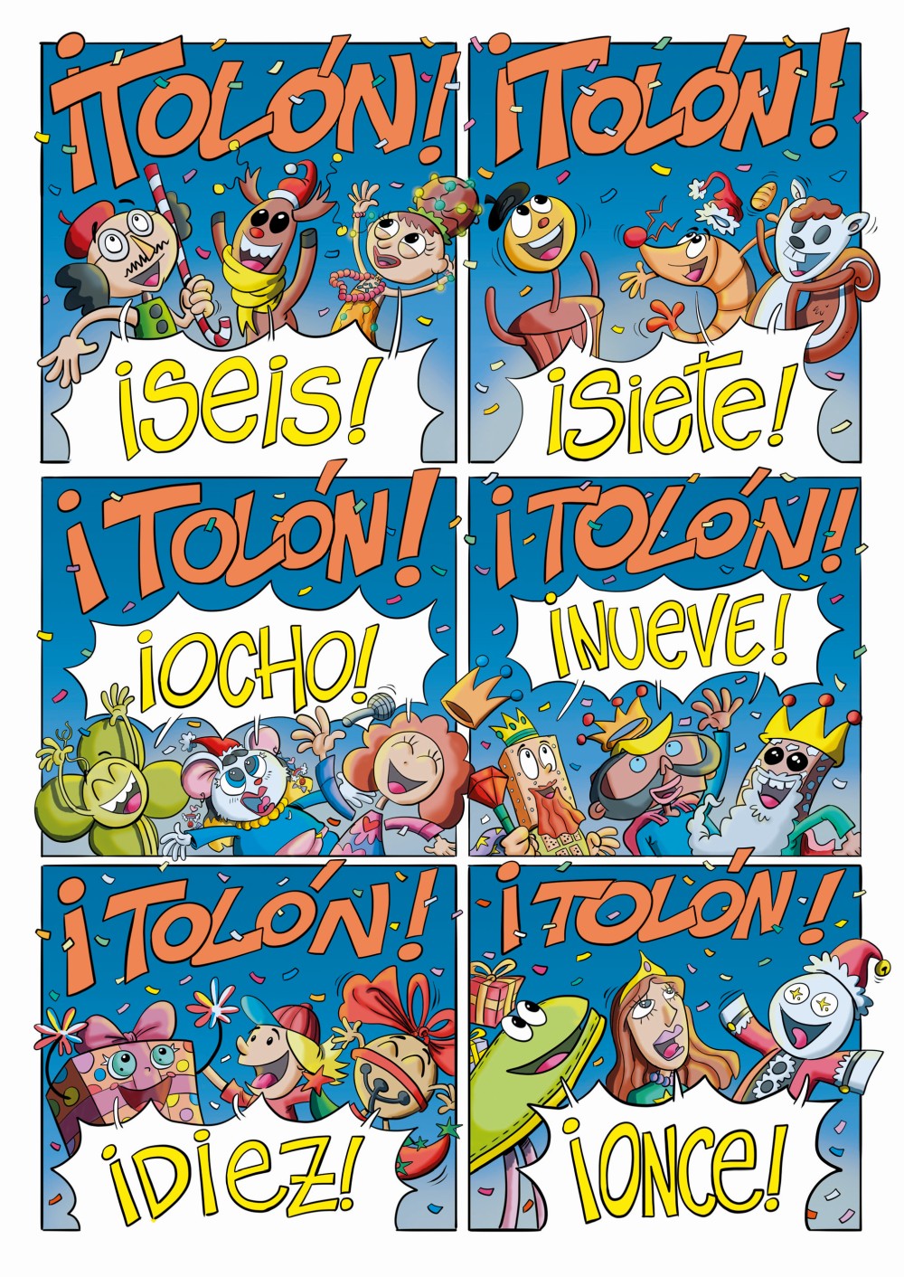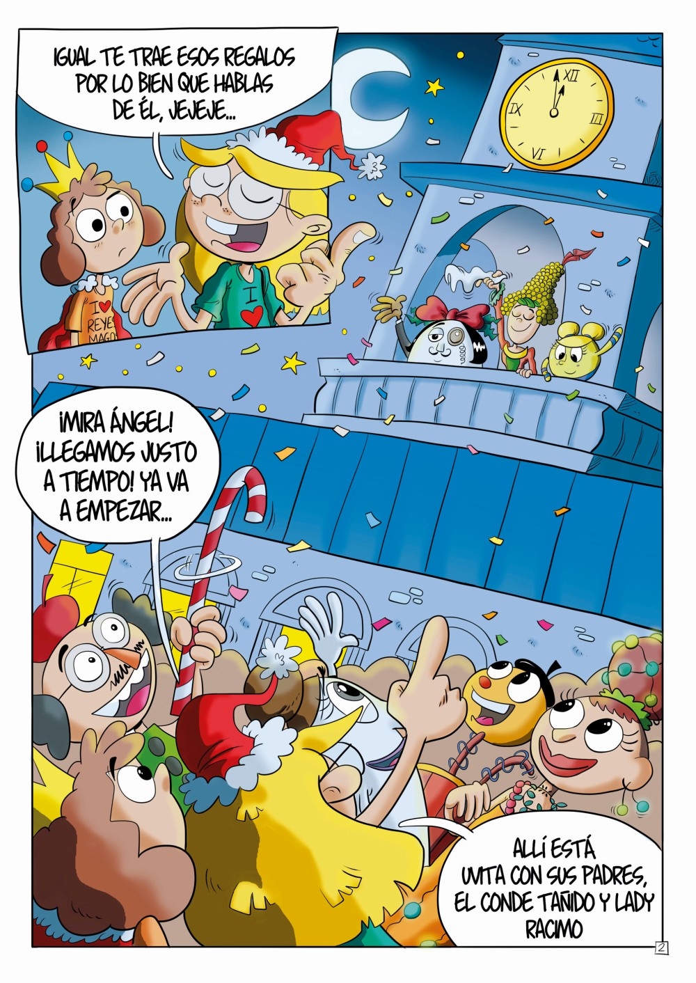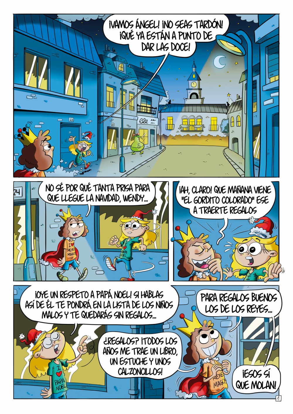 Comic book published with sponsorship from the Torrelavega City Council. The Torrelavega City Council, at the initiative of Aldea del Talento (Talent Village), presented the work "Where is Christmas?". A 48-page comic set at Christmastime with 38 characters designed by the children of the 19 schools in the municipality of Torrelavega. A beautiful story, colored by Juan Álvarez Fuente, about friendship, trends, solidarity, and values.